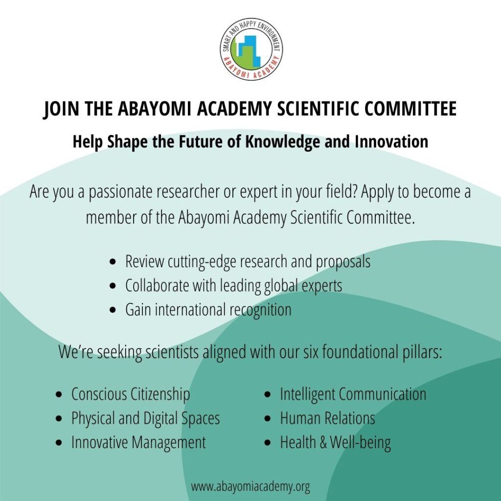 Are you a scientist, researcher, or expert fluent in English or Portuguese, passionate about building smarter, happier cities and communities? Abayomi Academy invites you to join our Scientific Committee—a prestigious opportunity to collaborate with global thought leaders and influence the future of research, society, and education.