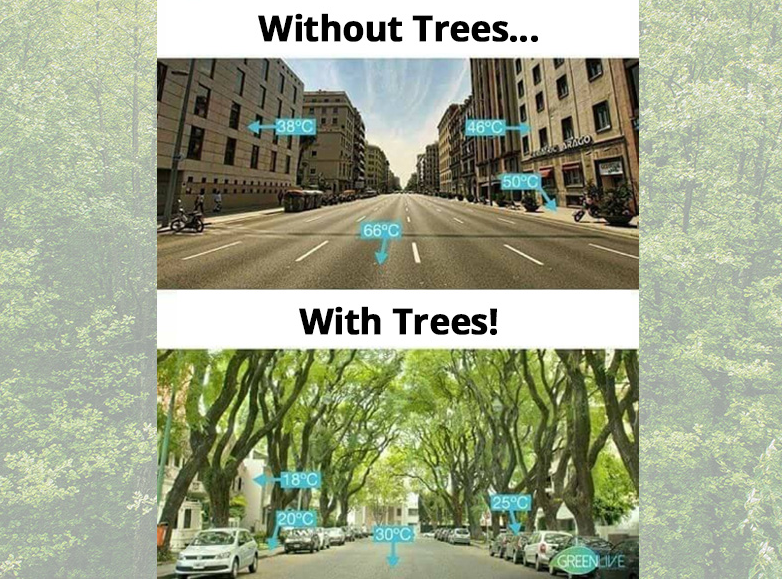 Figure 5: Tree-shaded streets can reduce perceived outdoor temperature by 6–10°C.