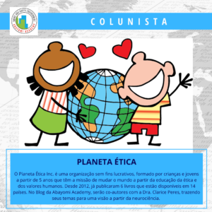 Atendendo ao convite da Dra. Clarice Peres da Universidade da Califórnia Los Angeles UCLA para co-autoria nos artigos para o Blog da Abayomi Academy, abordando a dimensão de Relações Humanas, as crianças e jovens do Planeta Ética trazem sua contribução sobre ética e valores humanos para serem observados a partir da neurociência.