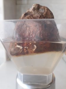 Finally, the sixth and last one, seemed to be angry, serious, all wrinkled, moldy, without a single leaf sprouting and apparently without roots… I was already thinking of discarding it when I noticed a timid root sprouting at the bottom of the pot: